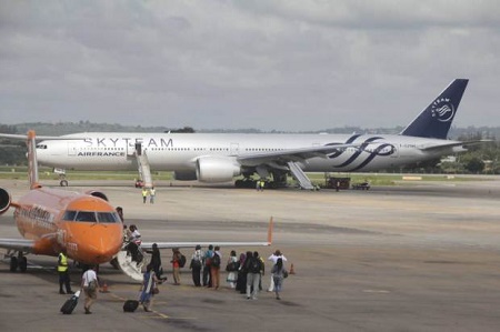 The Boeing 777 Air France flight 463 was heading to Charles de Gaulle airport in Paris when the pilots requested an emergency landing at the Moi International Airport at 12:37 a.m., police spokesman Charles Owino said.