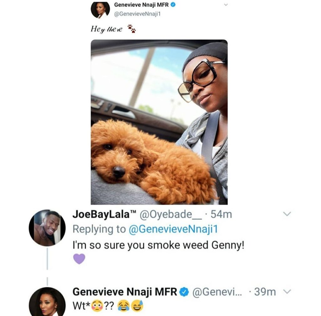 “I’m so sure you smoke weed Genny”, Oyebade wrote.