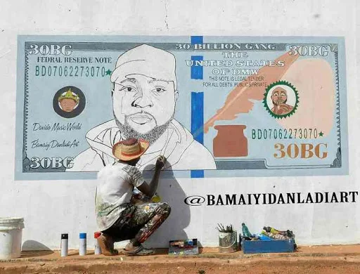 A capable Nigerian artist, Bamaiyi Danladi has drawn a delightful scene painting of the famous vocalist, Davido on a dollar bill.